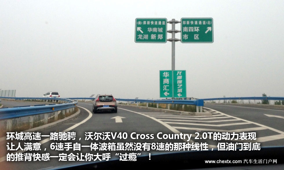 试驾出发点从河南锦堂盛沃尔沃4S店出发,走花园北路上环城高速,途径沟赵北服务区、再转向郑州西服务区、往新郑龙湖出发,然后根据情况再折返,全程约60KM左右,充分体现沃尔沃V40 Cross Country2.0T发动机带来的加速快感!go!