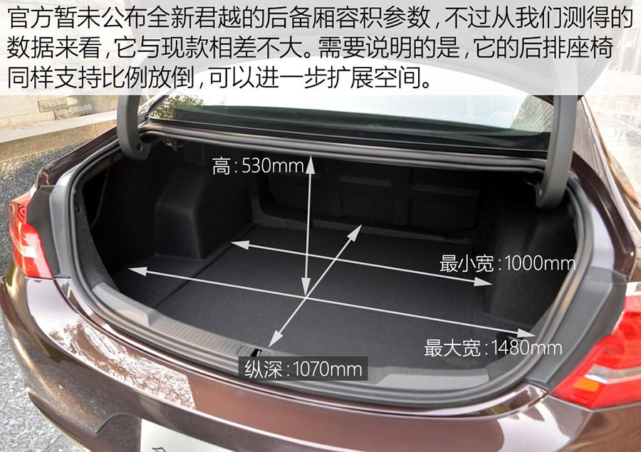 通过之前实拍全新君越,我们看到,身高173cm的体验者将前排座椅调节至最低,头部空间有一拳余量,而保持座椅不动,该乘客乘坐后排后,腿部为两拳多空间,而头部空间则是受到车型的限定而仅有一指空间,稍显压抑。