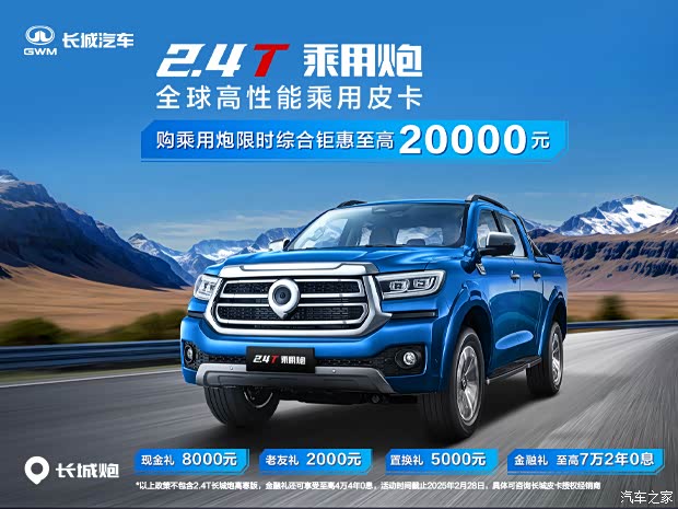 ——购越野炮限时综合钜惠至高33000元:现金礼10000元+老友礼3000元+置换礼10000元+金融礼至高10万3年0息;