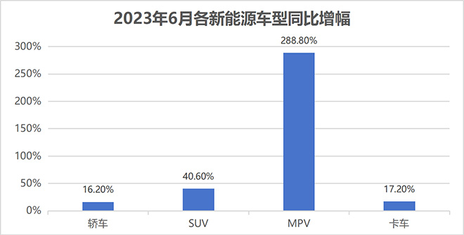 2023年,在政策支持与碳中和、碳减排的大背景下,受经济复苏、旅游出行、商务接待需求上扬、家庭成员结构等利好刺激,MPV累计销量为52.4万辆,同比增长21.6%。与此同时,在新能源浪潮席卷之下,新能源MPV车型6月同比爆涨288.8%,有着广阔的市场发展空间。